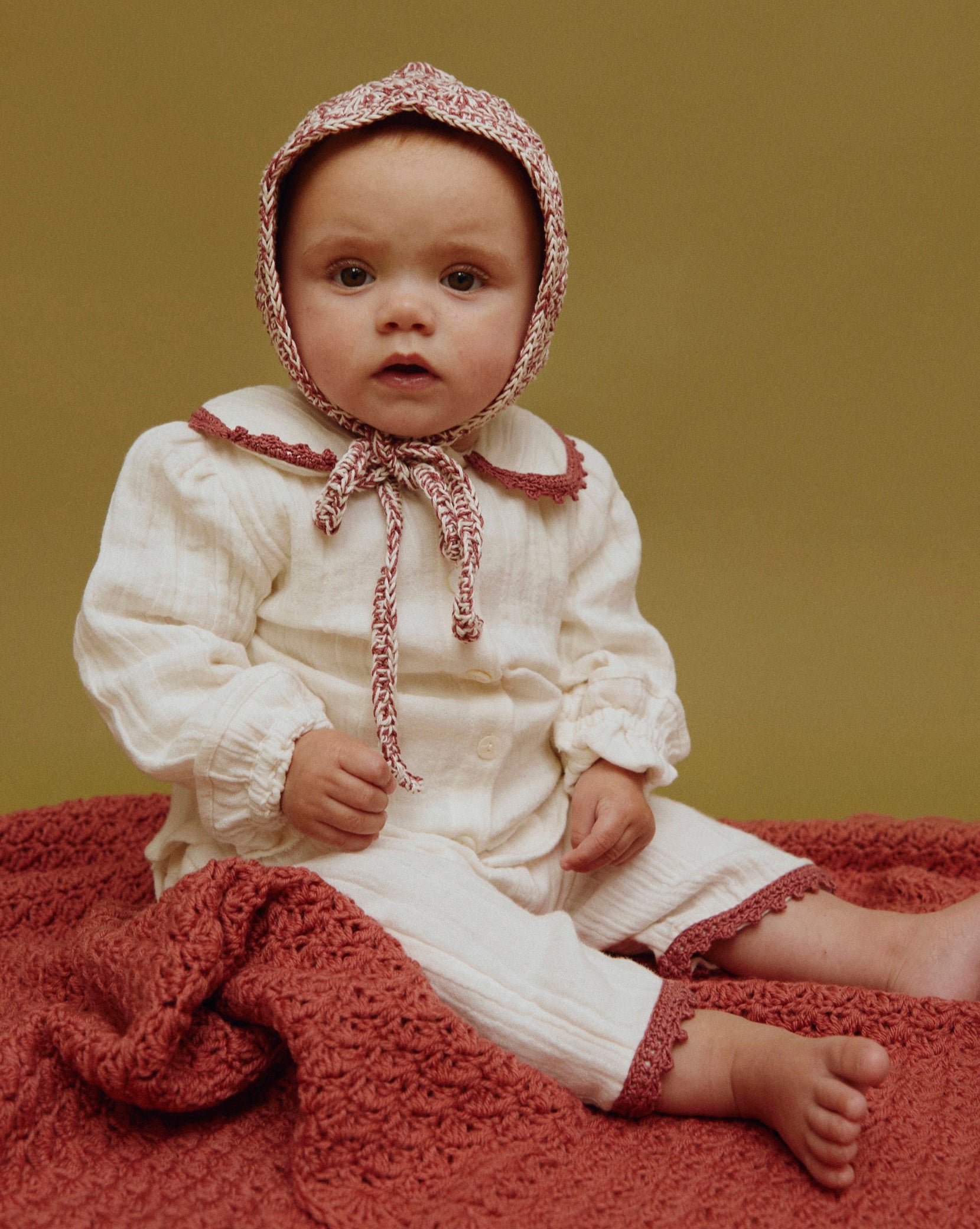This collection combines our signature crochet craftsmanship with 100% organic muslin fabric. Soft, breathable, and rich in texture, each design is perfect for layering with other YAARN favourites. Thoughtfully made from natural materials, these pieces bring warmth, dimension, and timeless charm to every wardrobe.