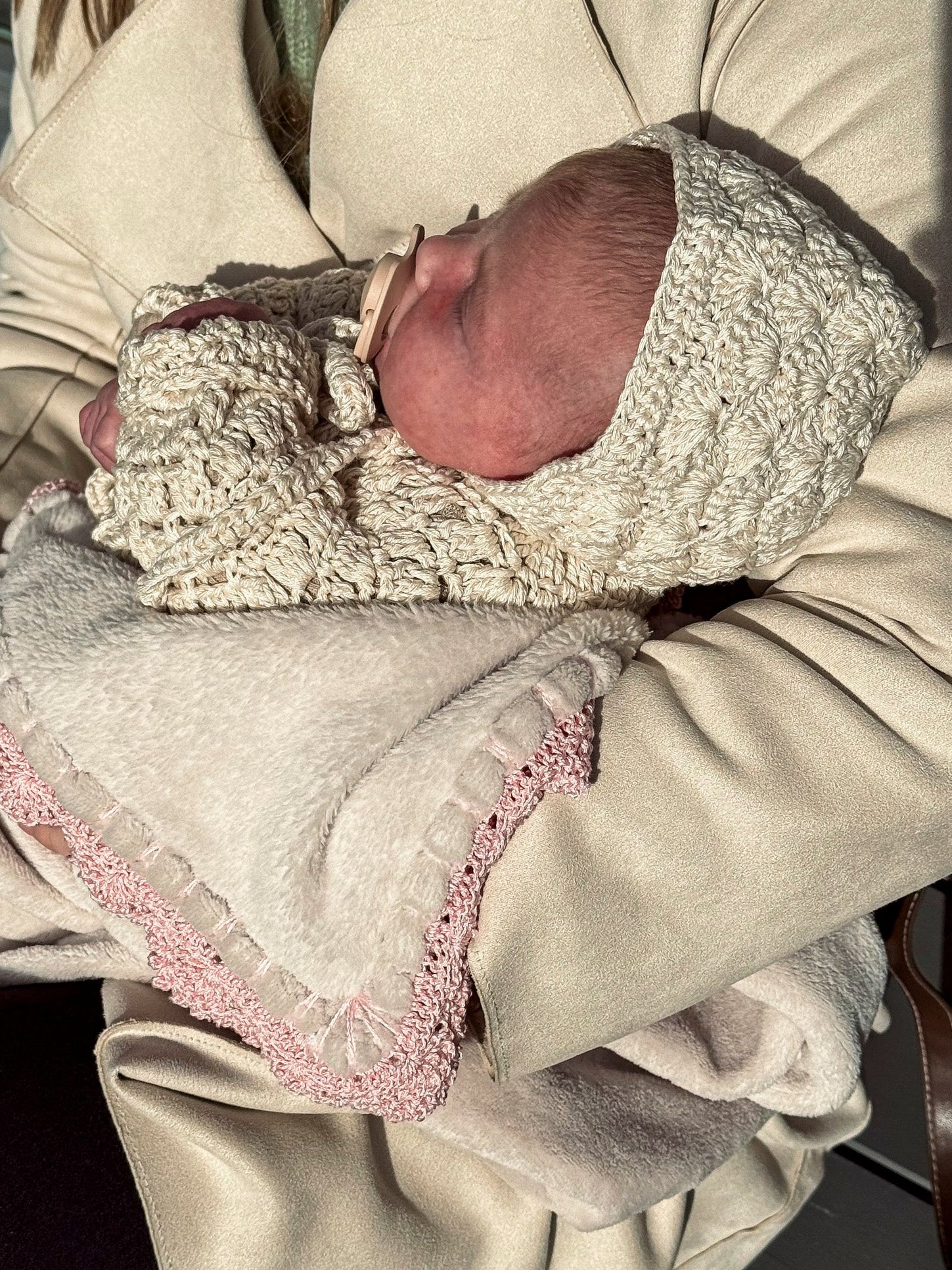 This delicate bonnet is handcrafted in a mix of two cotton yarns for softness and texture. Finished with our signature scalloped edge, it’s designed to coordinate with our Cotton Heirloom blanket and matching HARLOW vests.