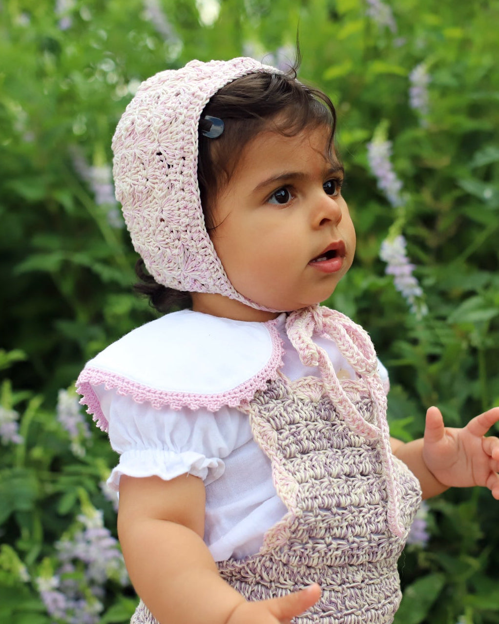 A delicate bonnet, handcrafted in a blend of two cotton yarns for added softness and subtle texture. Finished with our signature scalloped edge, it’s designed to coordinate with our Cotton Heirloom blanket and matching HARLOW vests.