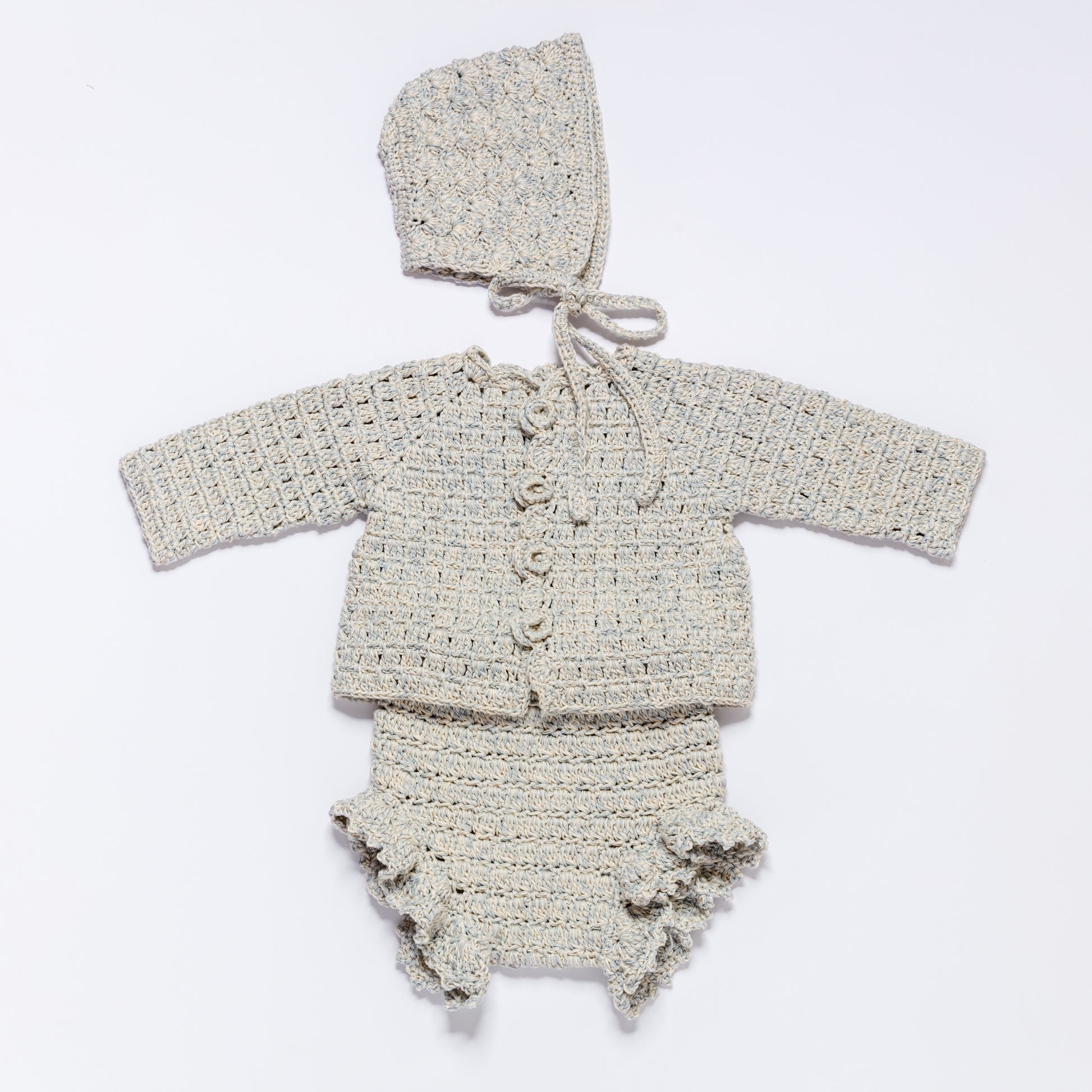We use 100% organic fabrics and cotton sourced locally in India, while our wool—imported from Australia and New Zealand—is expertly processed, spun, and dyed in the North of India. Our crochet is mindfully produced in our Antwerp atelier, with every pattern thoughtfully designed, combining a variety of stitches and textures to create pieces that are timeless, detailed, and truly heirloom.