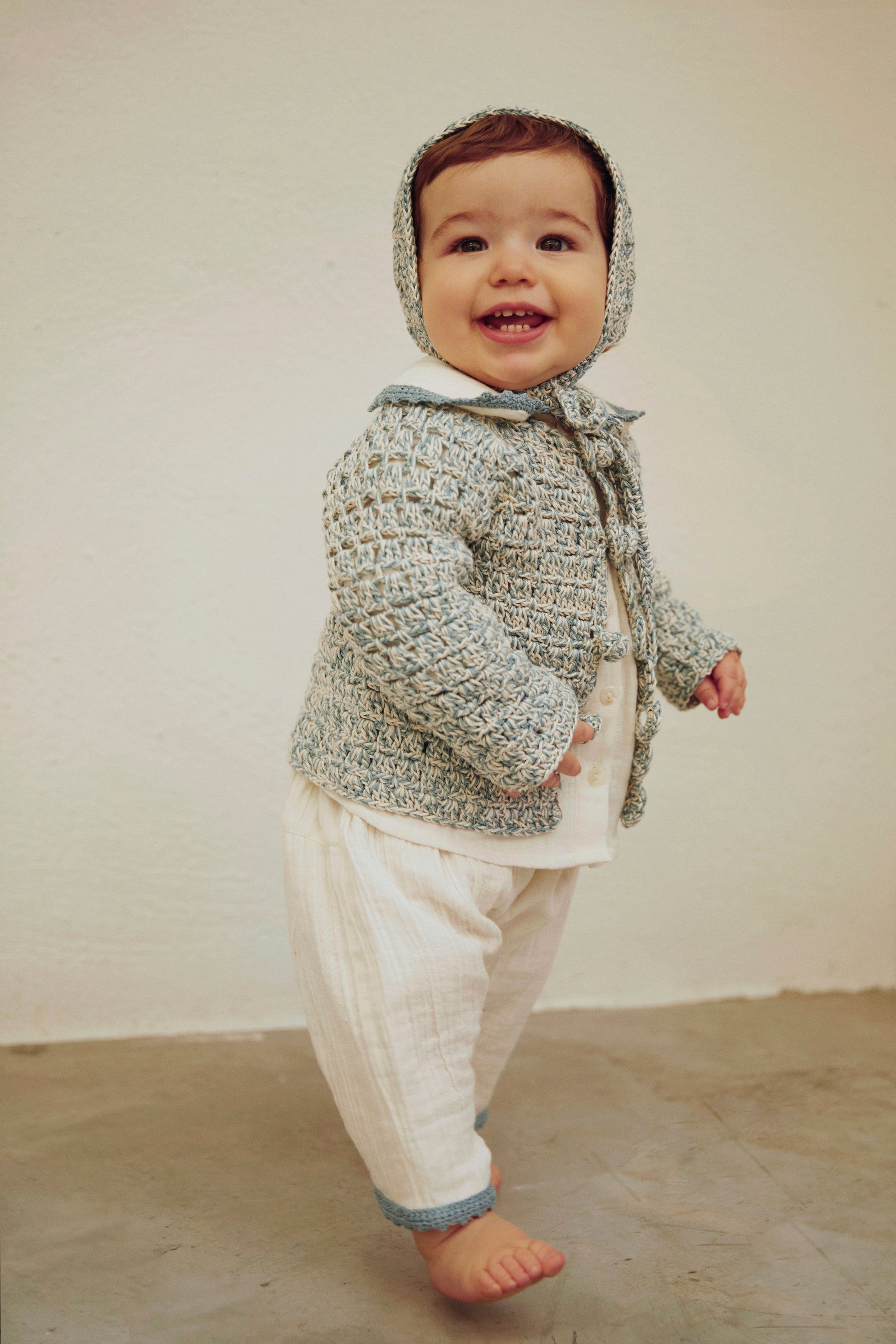 Felix in the photos is 14 months old, 73cm tall and wearing a 6-12m sample.
