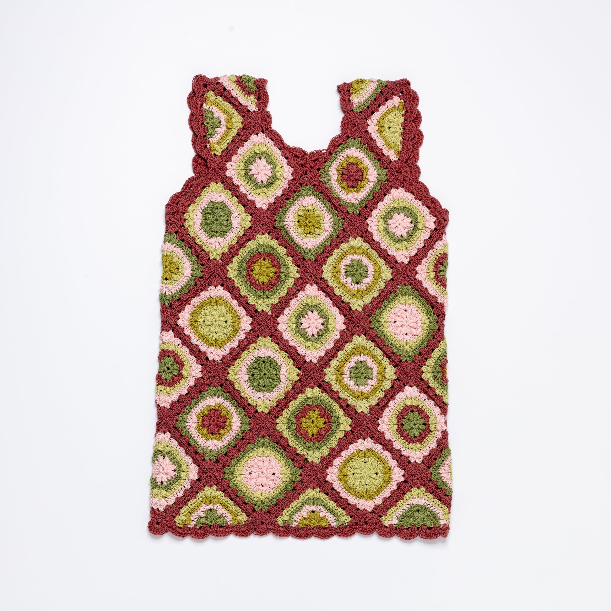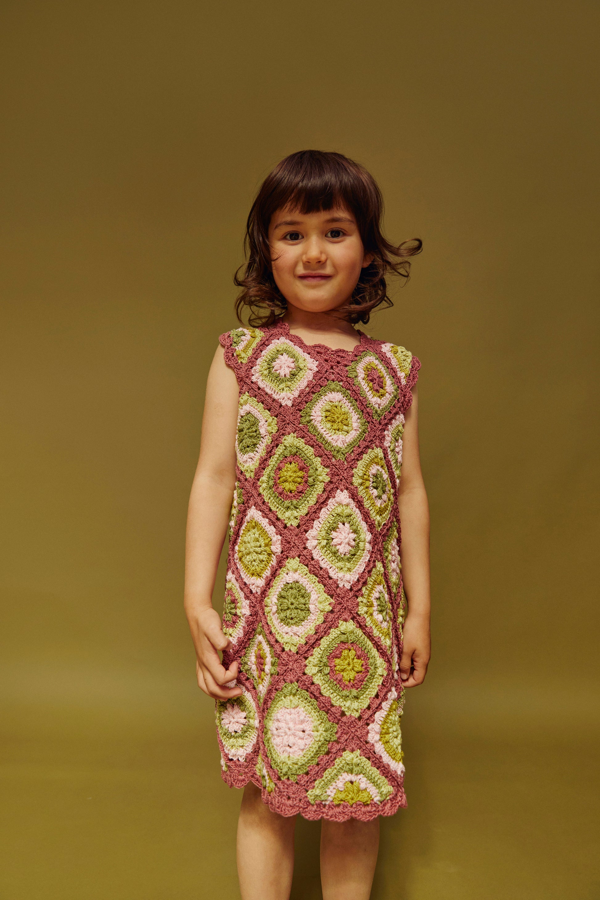 A showpiece of this season’s collection, the ANNA dress is crafted from granny squares in vibrant colourways that are repeated in different combinations throughout the dress. Finished with three mother of pearl buttons at the back. This is a perfect transitional piece that can be layered with our LEILA blouse or be worn as a dress by itself.