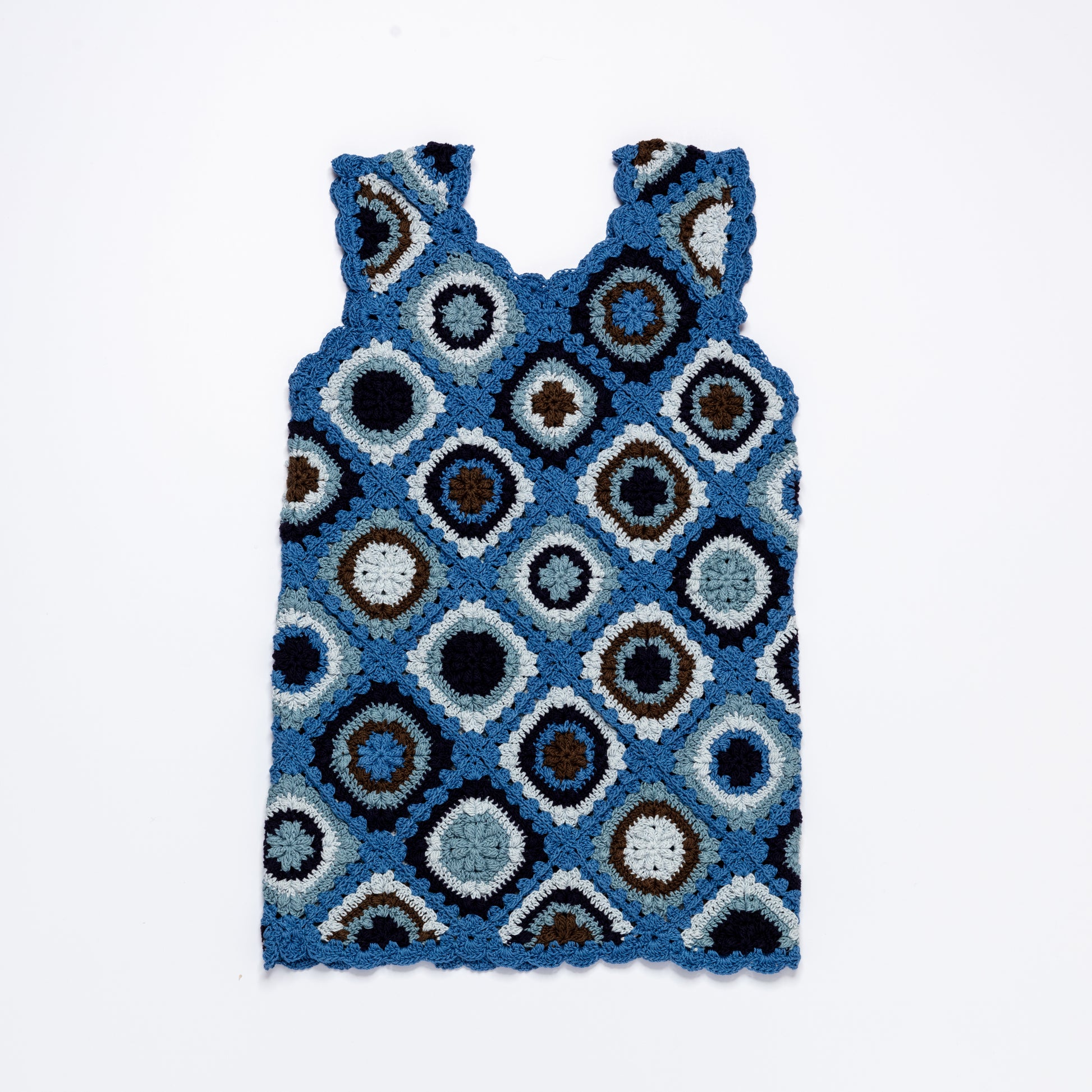 A showpiece of this season’s collection, the ANNA dress is crafted from granny squares in vibrant colourways that are repeated in different combinations throughout the dress. Finished with three mother of pearl buttons at the back. This is a perfect transitional piece that can be layered with our LEILA blouse or be worn as a dress by itself.