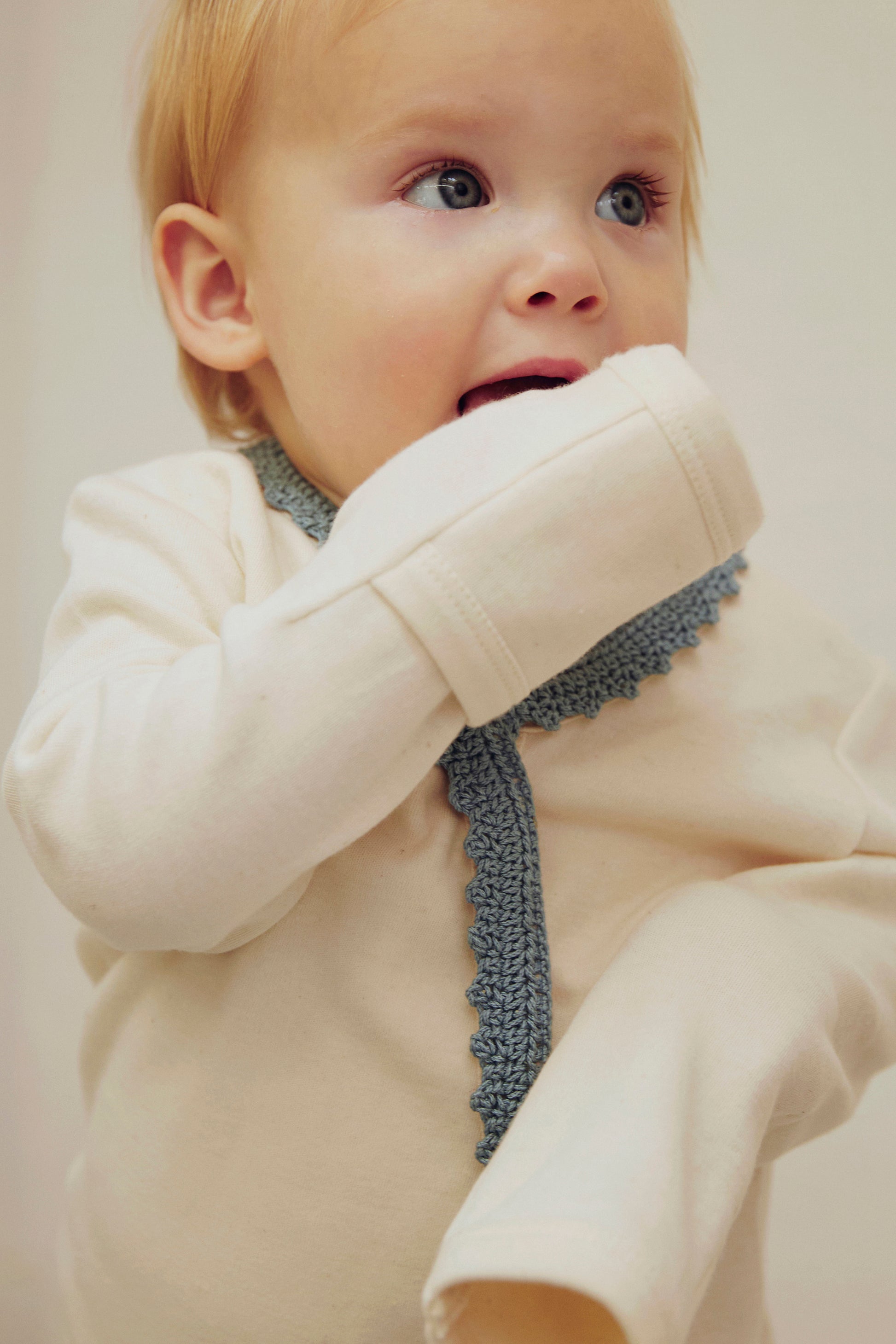 Our layette jersey pieces are designed for softness and comfort, made from 100% cotton interlock that’s gentle on delicate skin. Finished with our signature crochet trims, they bring a touch of handmade detail to everyday essentials. Perfect to combine with our Newborn Essentials, these pieces are timeless, easy to care for, and made to be loved and used again and again.