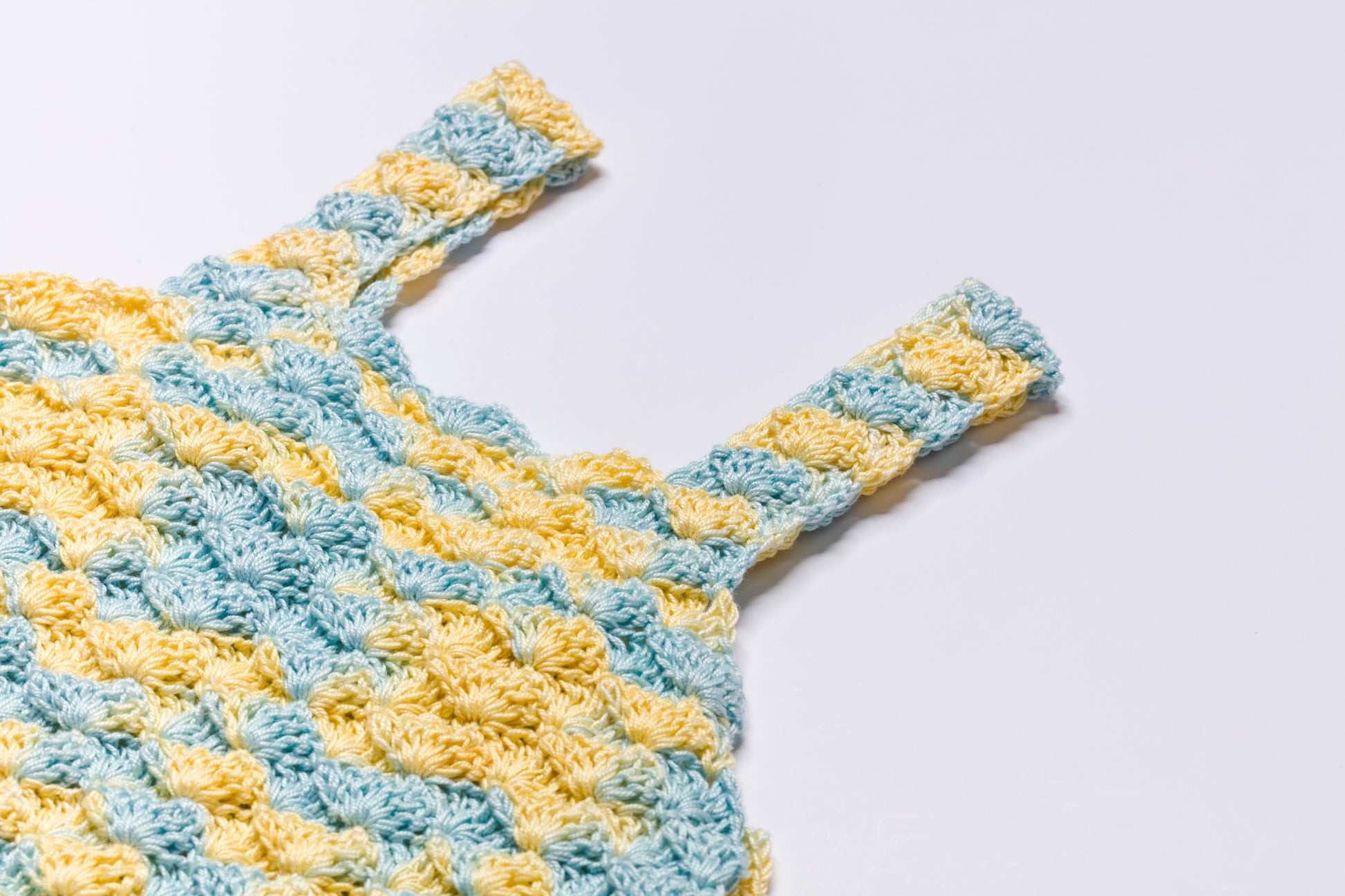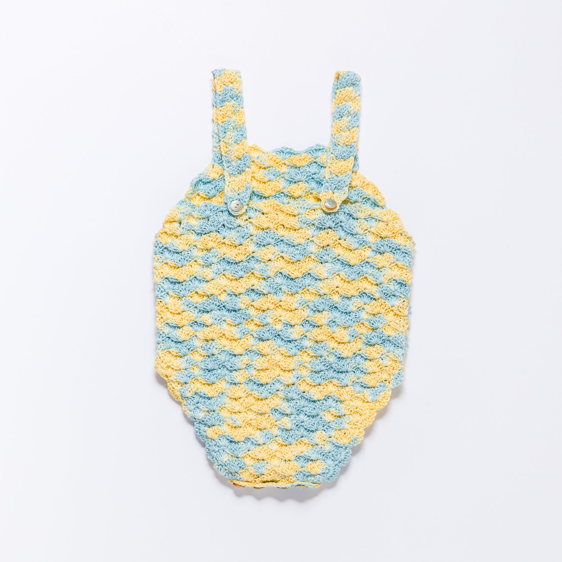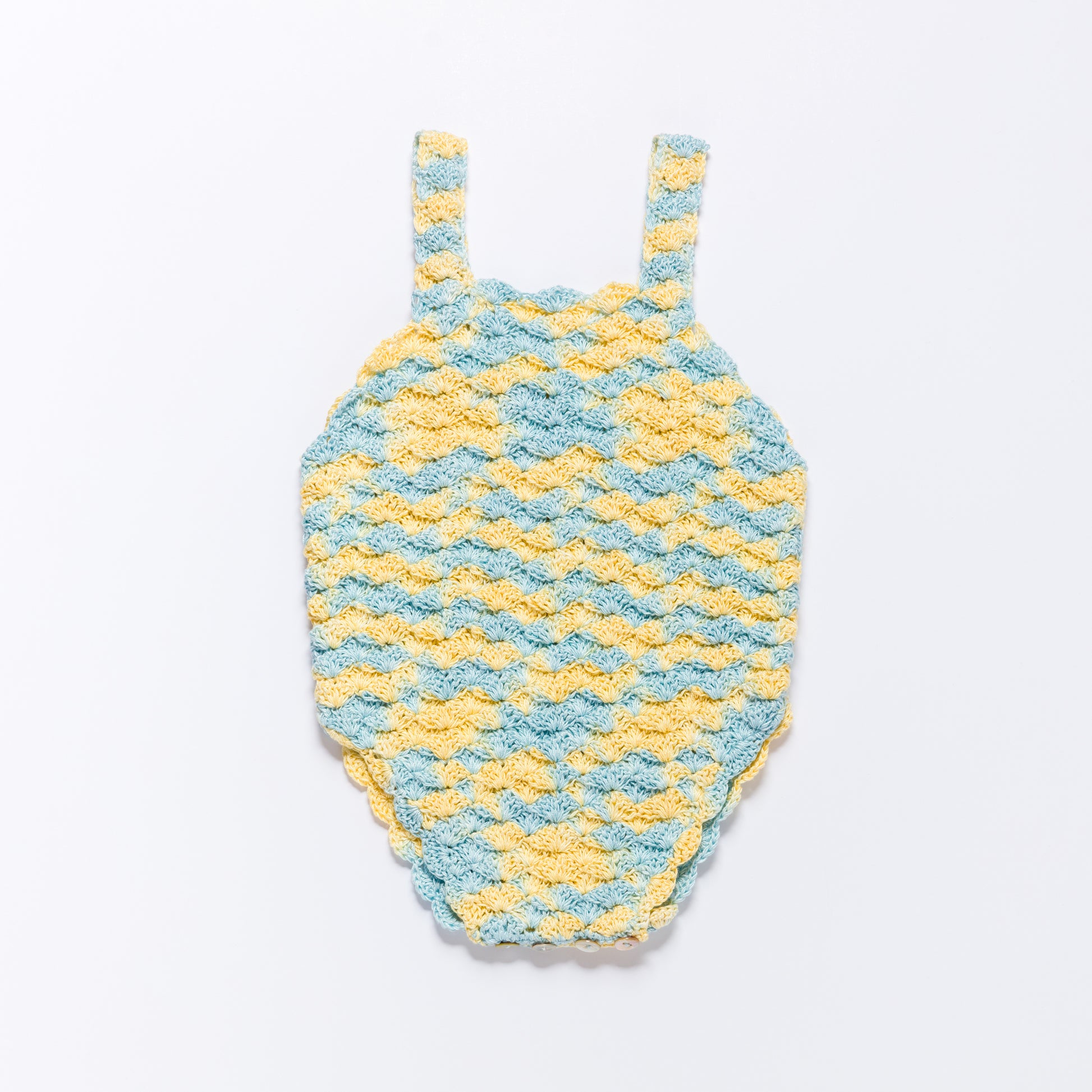 A playful high-summer romper, designed with crossover spaghetti straps and a soft, comfortable balloon silhouette. Each shoulder strap is finished with an elaborate crochet ruffle, adding a dressed-up detail that makes the SOLEIL romper a distinctive summer style.