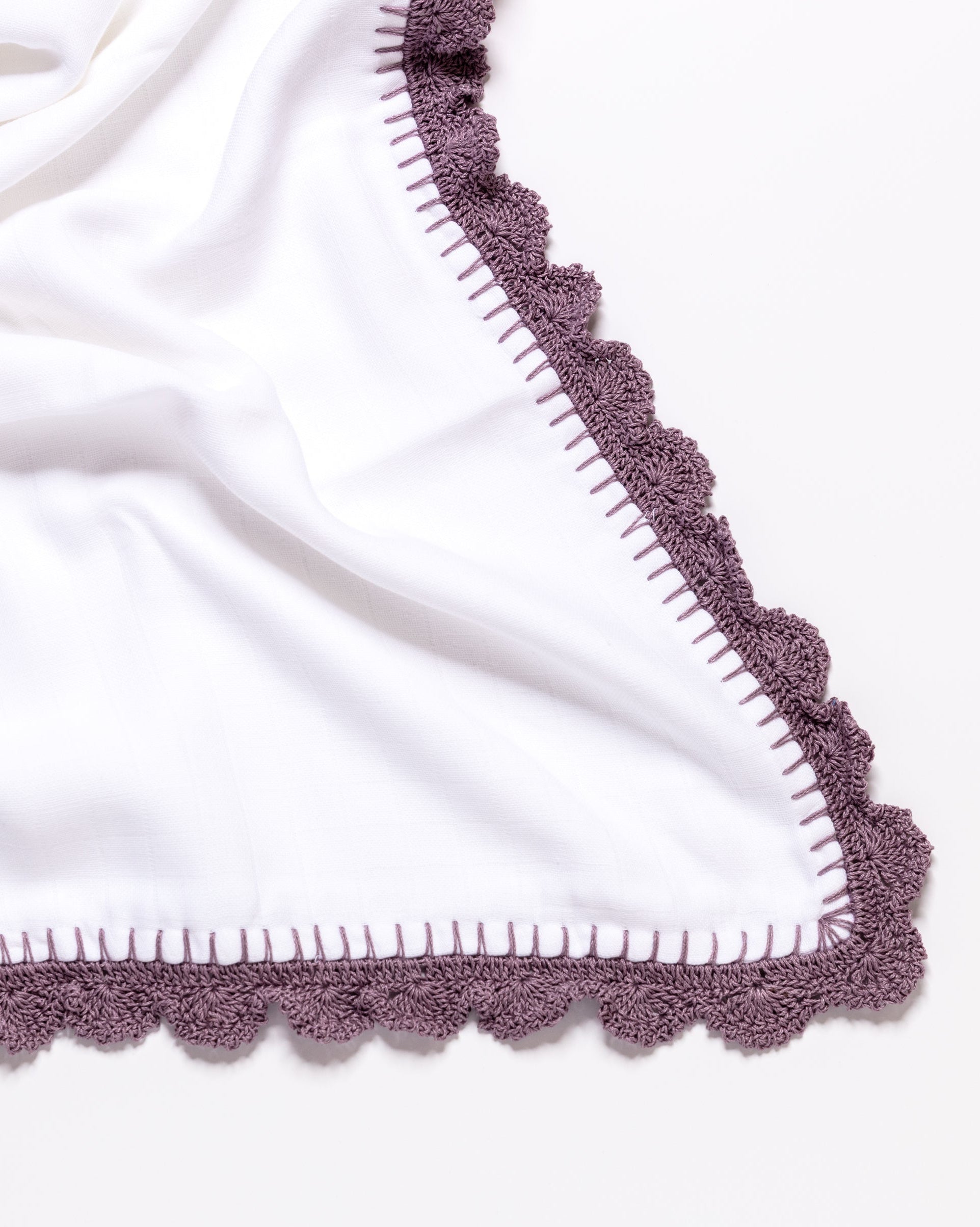 Our muslin swaddles are the ultimate everyday essential for their million and one uses, one can never have too many. They are breathable, made of the softest cotton and finished with our signature crochet border.
