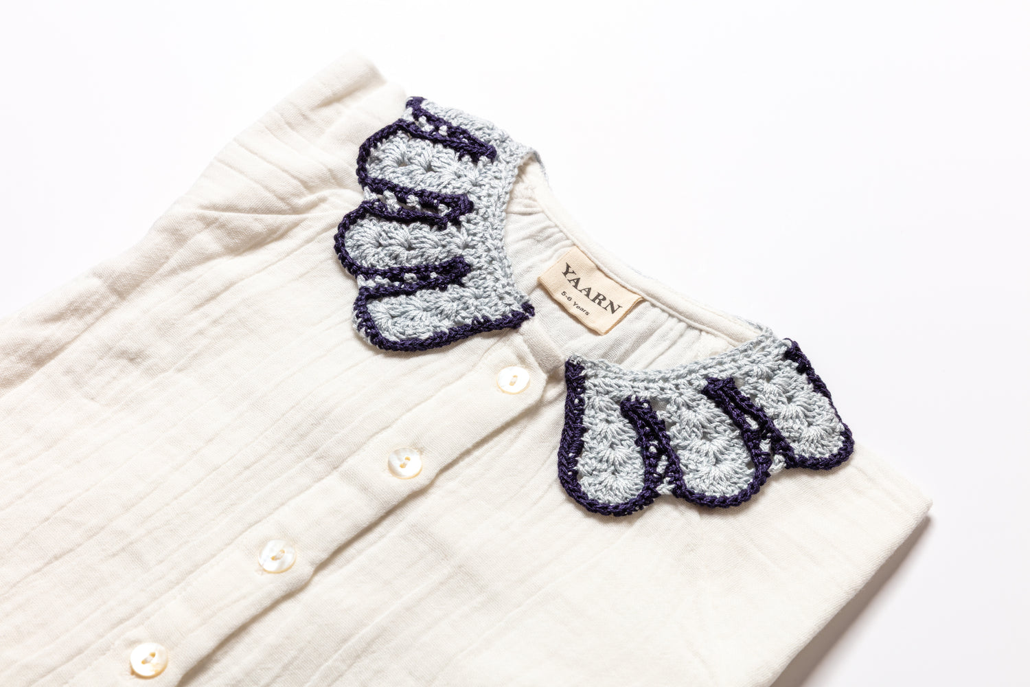 This collection combines our signature crochet craftsmanship with 100% organic muslin fabric. Soft, breathable, and rich in texture, each design is perfect for layering with other YAARN favourites. Thoughtfully made from natural materials, these pieces bring warmth, dimension, and timeless charm to every wardrobe.