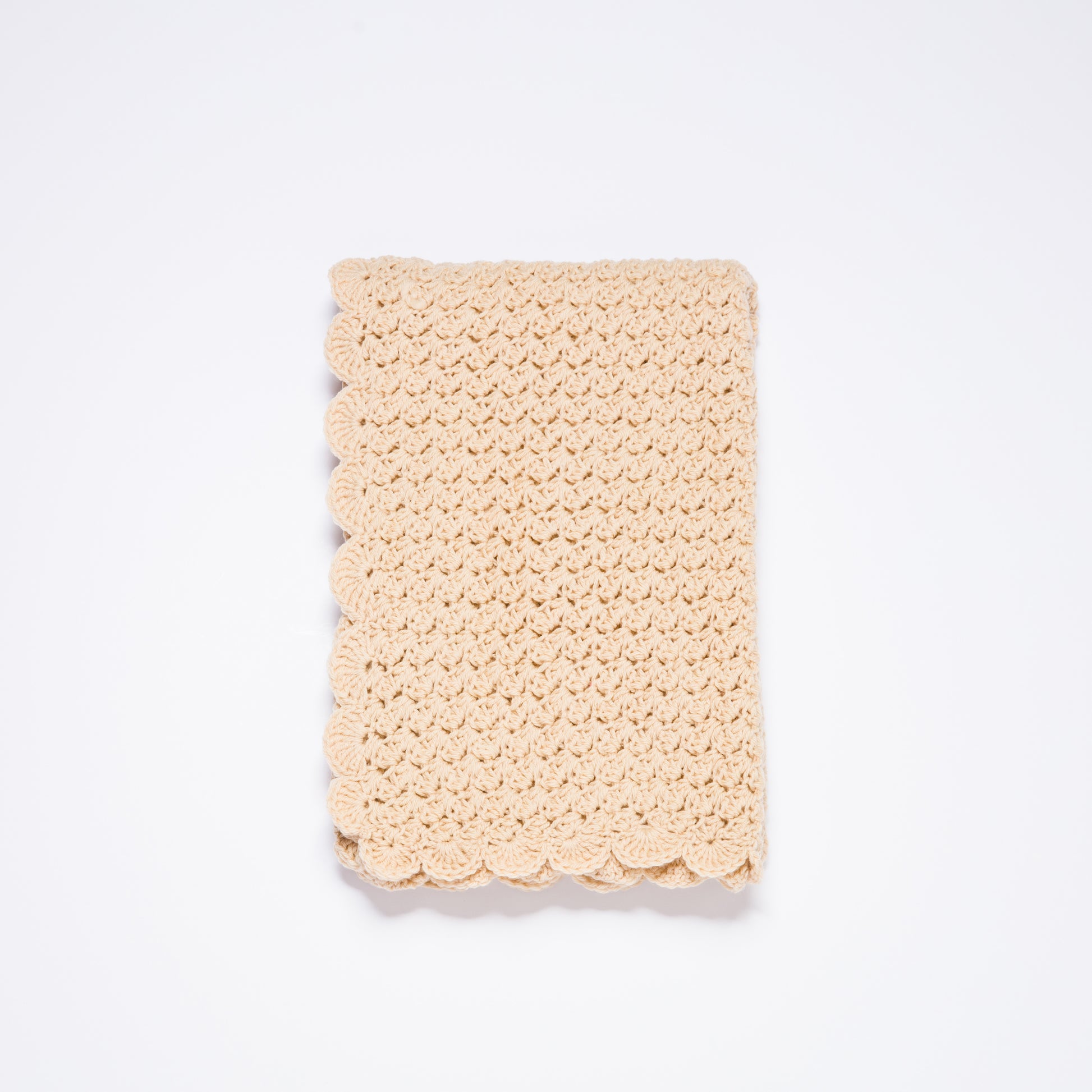 The perfect blanket for newborns during the colder months, lovingly handmade in an intricate crochet stitch with delicate scalloped edging. Crafted from our luxuriously soft wool, each blanket is a true heirloom piece, entirely hand-crocheted with care and attention to detail.