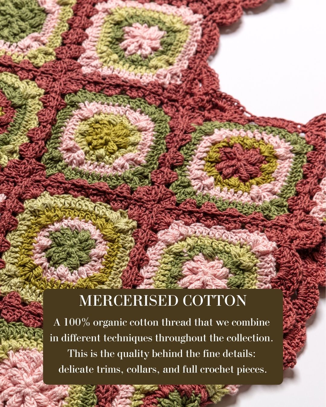 This collection blends soft, natural textures with timeless crochet details, creating pieces that feel both nostalgic and new. From cosy winter wools to playful trims in vibrant threads, every style is designed to be loved & worn— handcrafted to last and to be treasured through time.